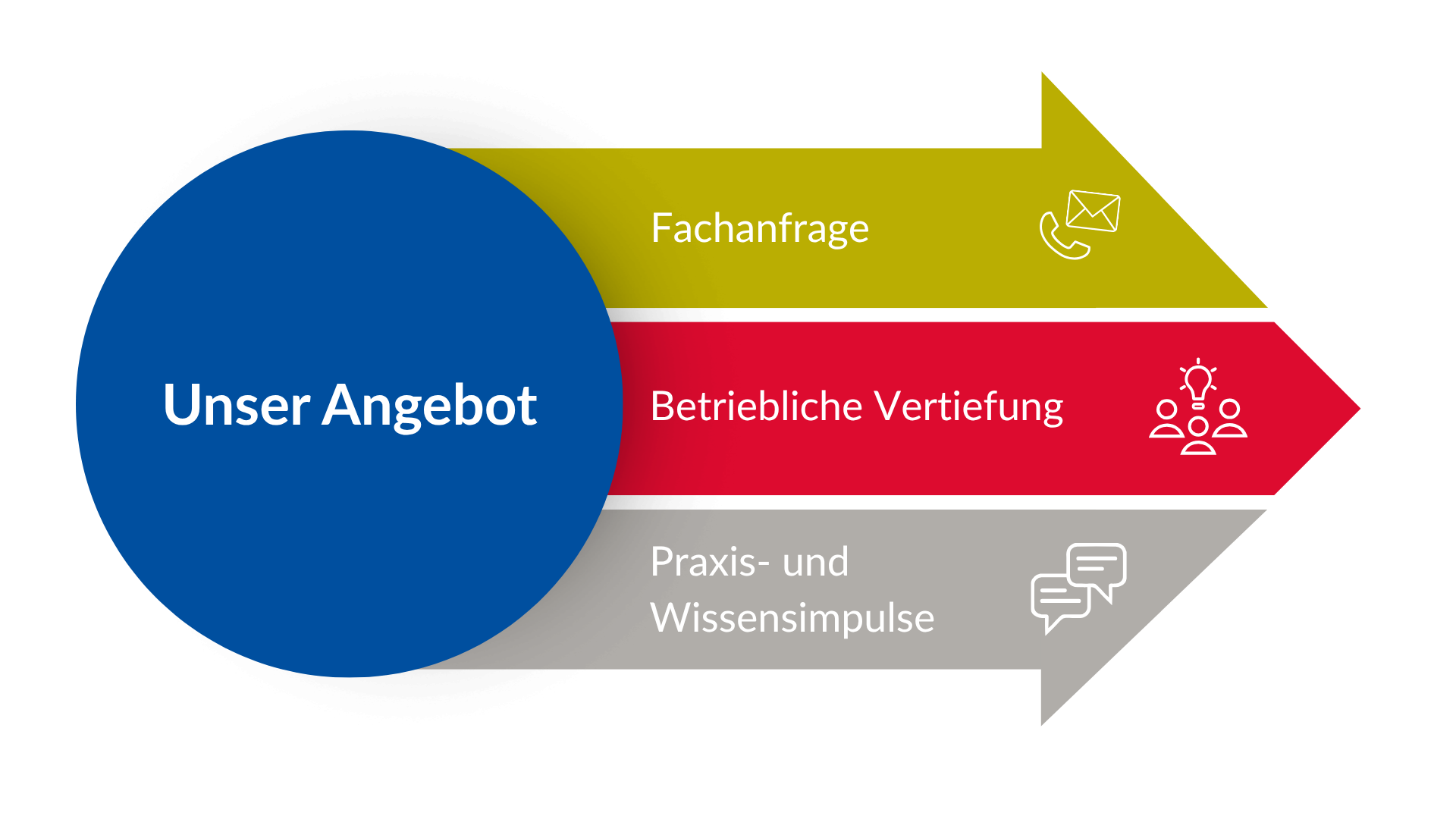 1. Betriebliche Akteure oder Akteure aus Verbänden und Gewerkschaften können Anfragen stellen und Informationen zu Zukunftsthemen, Unterstützungsangeboten und Förderprogrammen erhalten.